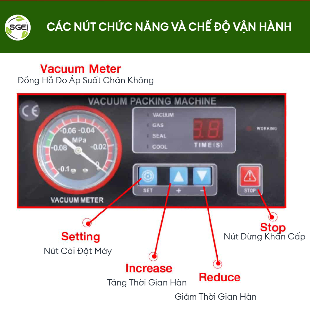 - Cài đặt thời gian hút chân không và thời gian nghỉ