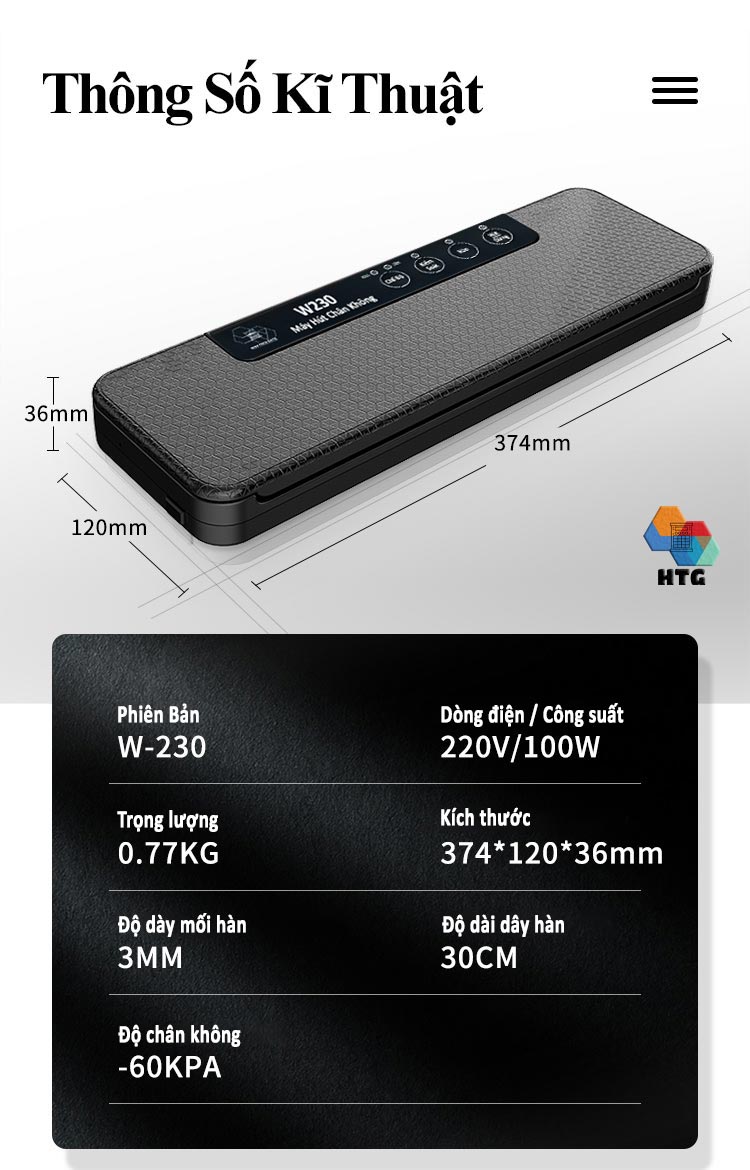 Đặc điểm nổi bật: - 5 nhiệt độ hàn miệng (niêm phong) miệng túi tương thích theo độ dày của túi sử dụng - Thiết kế chống thấm nước, ngắn chất lỏng xâm nhập vào