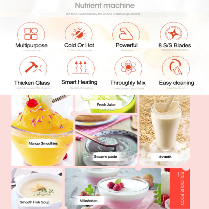 Loại sản phẩm : Máy làm sữa hạt Tính năng sản phẩm : Làm sữa hạt, sữa đậu nành. Nấu cháo, nâu súp. Nấu bột cho bé ăn dặm. Xay hạt, xay đồ khô, xay