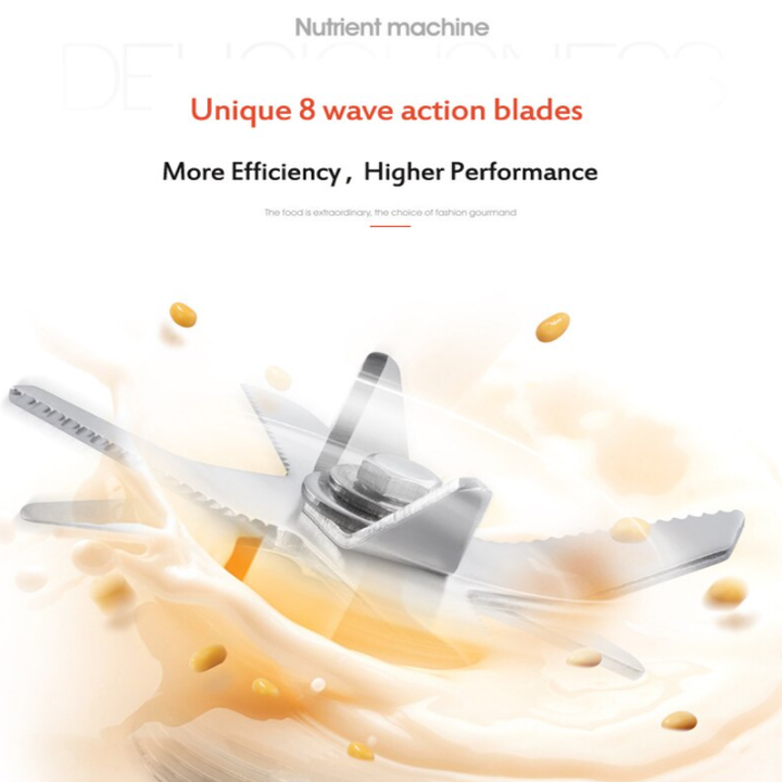 - Điểm vượt trội ở chiếc máy làm sữa hạt được lắp đặt tăng cường lưỡi dao 8 lá, thiết kế kép giúp tăng thêm công suất xay mịn, nhuyễn các thực phẩm. Thêm vào đó lưỡi dao làm bằng chất liệu thép không gỉ SUS430 cao cấp, không bị rỉ sét, an toàn thực phẩm. Việc vệ sinh cối & lưỡi dao cũng vô cùng dễ dàng, sáng bóng ngay mà không cần mất quá nhiều công sức. Cối thủy tinh chịu nhiệt