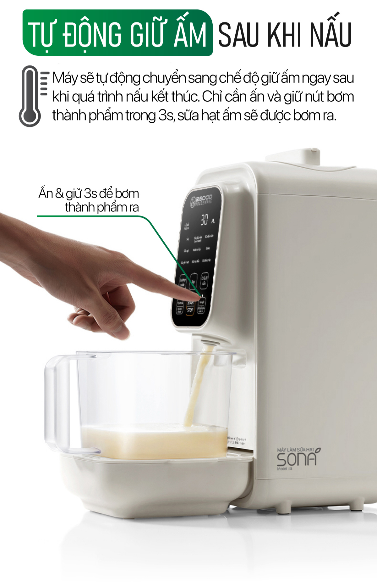 - Nhiệt kế đo sữa trong lòng máy chính xác 99.9%, giúp món sữa thơm ngon, dễ uống, uống là nghiện