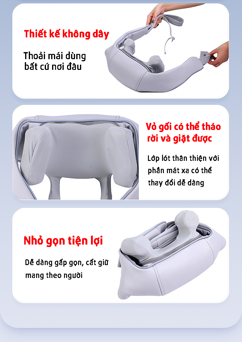 Gối Massage Đa Năng Gối massage được cải tiến với nhiều tính năng riêng biệt mà các gối massage cùng dòng chưa có được. Gối massage được chia thành 3 phần massage với chức năng
