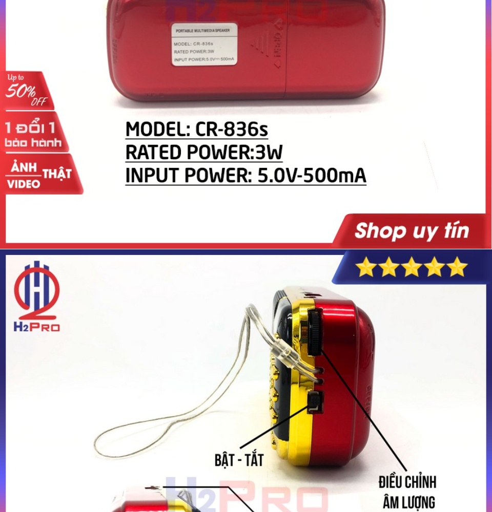 GIỚI THIỆU SẢN PHẨM Đây là mẫu máy nghe pháp đang được ưa chuộng nhất hiện này với thiết kế đẹp, loa nghe rất ấm và vang, đặc biệt đây là mẫu đài có đèn pin chiếu sáng với 3 led cực sáng, pin dung lượng cao, bền - Có các phím số thuận tiện, dễ nhìn, dễ sử dụng - Dễ mang bên mình để thường xuyên nghe qua usb, thẻ nhớ khi làm bất cứ việc gì - Có đài FM để nghe đài lúc rảnh rỗi ️ ĐẶC ĐIỂM NỔI BẬT - Chất lượng âm thanh tốt, rõ ràng, ít rè, công suất 3W - Bắt sóng radio FM tốt, trực tiếp chơi nhạc từ USB, thẻ nhớ - Màn hình hiển thị, bàn phím số, đèn pin siêu sáng, kiêm đồng hồ để bàn - Thiết kế đơn giản, gọn nhẹ cực kì bền và an toàn, pin 4400mah dùng 5 giờ liên tục - Kiểu dáng phụ kiện nghe nhạc hiện đại và ấn tượng - Kích thước nhỏ nhắn, thuận tiện sử dụng có thể sử dụng được cho tất cả các loại máy tính như: máy tính bàn, máy tính xách tay, đem đến cho bạn những trải nghiệm âm thanh hoàn hảo nhất ️ THÔNG TIN SẢN PHẨM - Model: CR-853 - AnTen: Không - Jack cắm tai nghe: Không - Nghe nhạc bằng USB: Có hỗ trợ. - Nghe nhạc bằng thẻ nhớ: Có hỗ trợ tới 2 khe cắm thẻ nhớ - Đèn Pin: Không. - Thời gian nghe: Nghe liên tục cả ngày cũng không hết PIN. - Thời gian sạc: 5-6 tiếng. - Báo hiệu đầy Pin: đèn không chớp tắt. - Bluetooth: Không. - Nghe đài FM: Có. - Chế độ lặp lại bài hát: Có. - Chuyển đổi giữa 2 khe thẻ nhớ, - Chọn bài, lặp bài, phát lần lượt, - Chuyển đổi Foler, Lặp Foler - Kích thước: 12 x 5 x 5 Cm - Trọng lượng: 300g LÝ DO NÊN LỰA CHỌN CHÚNG TÔI ️ Sản phẩm cam kết đúng như mô tả quảng cáo, Không đúng shop đồng ý hồi hàng hoàn tiền 100% ️ Shop uy tín với chế độ bảo hành và hỗ trợ lâu dài, hỗ trợ 24/7 kể cả ngày lễ và ngày nghỉ ️ Là đơn vị khởi nghiệp nên chúng tôi luôn coi trọng uy tín, sự hài lòng của khách hàng là nền tảng để chúng tôi.
