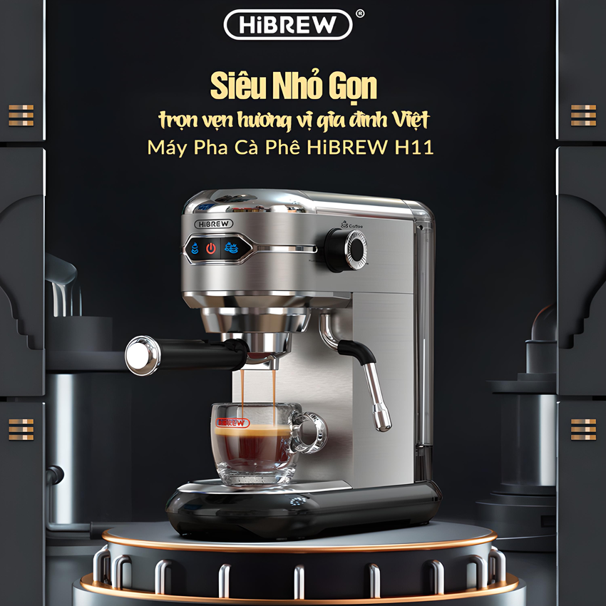 ✨Máy pha cà phê espresso bán tự động thương hiệu HiBREW cao cấp H11 , áp suất 19bar , công suất 1450W - Hàng Chính Hãng