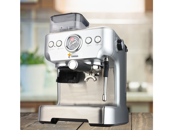 Máy pha cà phê Tahawa TS6213 - Máy pha cafe đa chức năng: Espresso, Cappuccino. Áp suất bơm: 20 bar - Công suất: 2650W - 3050W. Có vòi đánh sữa - Bảo hành chính hàng 12 tháng Thông số kỹ thuật ⦁ Chức năng pha cà phê : Cappuccino, Espresso ⦁ Ngăn chứa cafe hạt : 250g ⦁ Công suất : 9+5 ⦁ Dung tích bình nước : 2,7 lít ⦁ Dạng nút điều khiển : Nút nhấn ⦁ Vòi tạo hơi : 1 ⦁ Số họng pha : 1 Group ⦁ Nguồn điện áp : 220V - 240V / 50Hz - 60Hz ⦁ Kích thước : 33,9cm x 37,3cm x 51,6cm ⦁ Trọng lượng bao bì : 12,54kg ⦁ Bảo hành : 12 tháng Ưu điểm nổi bật của máy pha cà phê Tahawa TS6213 Tahawa TS6213 là dòng máy pha cà phê bán tự động dành cho gia đình, văn phòng, khách sạn, nhà hàng... Vỏ máy được làm từ chất liệu inox cho độ sáng bóng cao, chống han gỉ, sở hữu màu bạc sang trọng, phù hợp với mọi không gian nội thất. Bình chứa nước có dung tích 2.7 lít, được làm từ nhựa cao cấp, bền đẹp. Máy pha cà phê Tahawa TS6213 có tích hợp hộc chứa hạt 250g, vì vậy người dùng có thể sử dụng cà phê bột hoặc cà phê hạt tùy thích. Máy pha cà phê trang bị 1 vòi đánh hơi sẽ giúp bạn pha ra những ly cà phê thơm ngon, hấp dẫn. - Chức năng xay hạt cà phê có 15 mức cỡ xay (TBD), được điều chỉnh bằng tay. Máy pha cà phê có hệ thống làm nóng nhanh bằng điện tử, mức áp suất pha từ 5 - 15 bar. - Máy có bơm áp lực điện từ mạnh 20 bar: Sử dụng áp lực bơm nước lý tưởng trong thời gian ngắn có thể thẩm thấu qua bột cà phê và lấy ra những tinh chất nhất của cà phê, cho ra cốc Espresso thơm ngon, hảo hạng. - Hệ thống capuccino có thể điều chỉnh được: Cà phê Espresso đi kèm chức năng đánh bọt, có thể xả hơi nước nhanh chóng giúp sữa thẩm thấu đều vào cà phê, làm cho cốc cà phê thêm thơm ngon, đẹp mắt. - Tay cầm pha cà phê thiết kế chắc chắn, dày dặn. Bộ lọc có thể lấy ra từ tay cầm dễ dàng, tiện lợi cho việc vệ sinh, giúp loại bỏ hết chất cặn bã cà phê còn bám lại trên phin lọc, tránh để lại mùi lạ.
