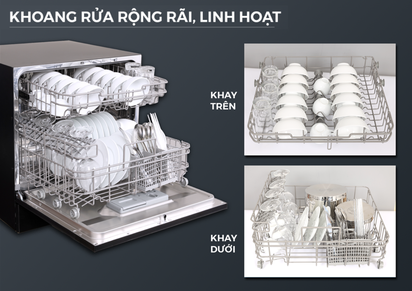 Kiểu dáng hiện đại, rửa khoảng 3 - 4 bộ chén đĩa Phù hợp cho người có da tay dị ứng với nước rửa chén, dành thêm thời gian bên gia đình Máy rửa chén