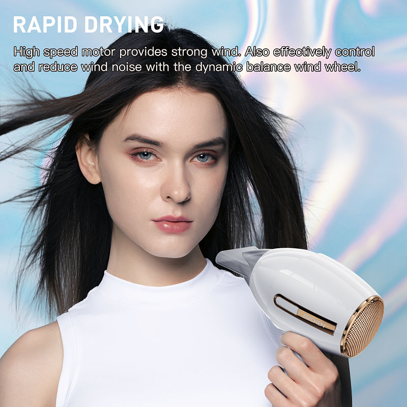 Động cơ không chổi than tốc độ cao 110.000 rpm, tốc độ gió 65m/s, làm khô tóc ngắn chỉ trong 40 giây Cảm biến kiểm soát nhiệt thông minh NTC, kiểm soát nhiệt độ 100