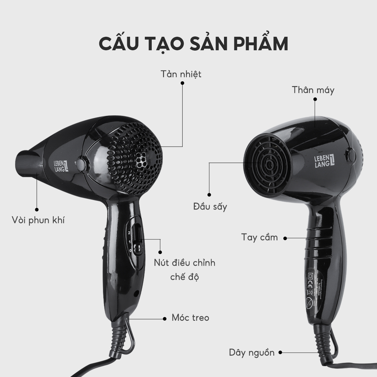 Máy sấy tóc Lebenlang 2 chiều nóng lạnh, gấp gọn tiện lợi, chống xơ rối tóc bằng công nghệ ion
