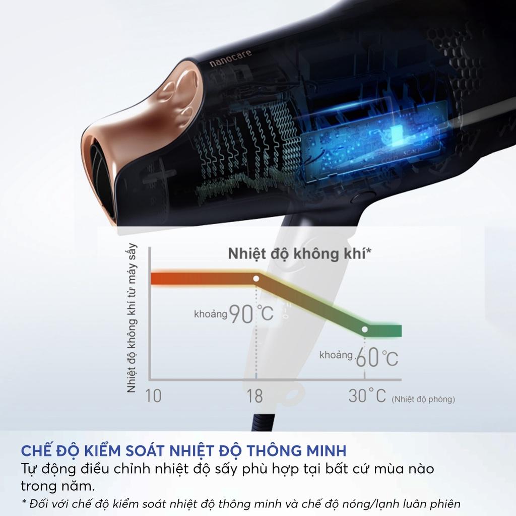 Động cơ không chổi than tốc độ cao 110.000 rpm, tốc độ gió 65m/s, làm khô tóc ngắn chỉ trong 40 giây Cảm biến kiểm soát nhiệt thông minh NTC, kiểm soát nhiệt độ 100