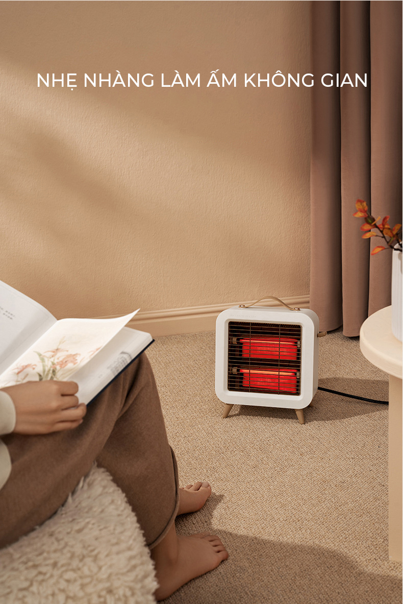 Thiết kế nhỏ gọn, tiện dụng Sưởi ấm nhanh, không gây tiếng ồn 3 mức phát nhiệt Có tính năng quay đảo hướng phát nhiệt, phạm vi phát nhiệt rộng Lưới tản nhiệt thiết kế