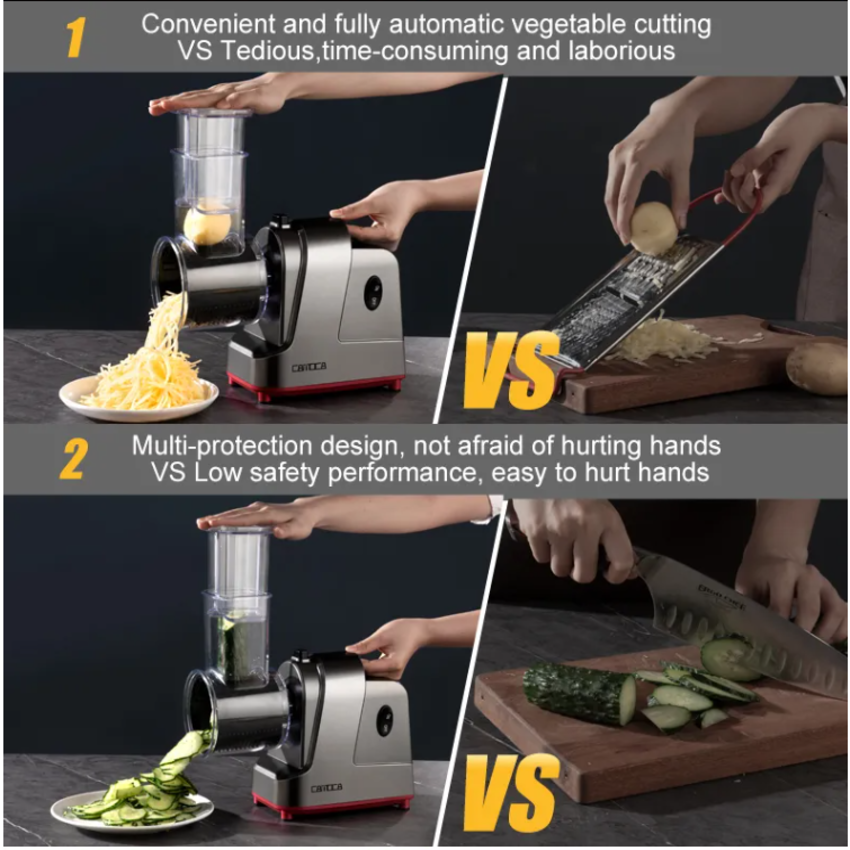 ✨Máy thái rau củ quả đa năng 5 chế độ, thương hiệu Mỹ Camoca cao cấp VSQ-S5, công suất 500W, số lượng lưỡi dao 5 lưỡi - Hàng chính hãng