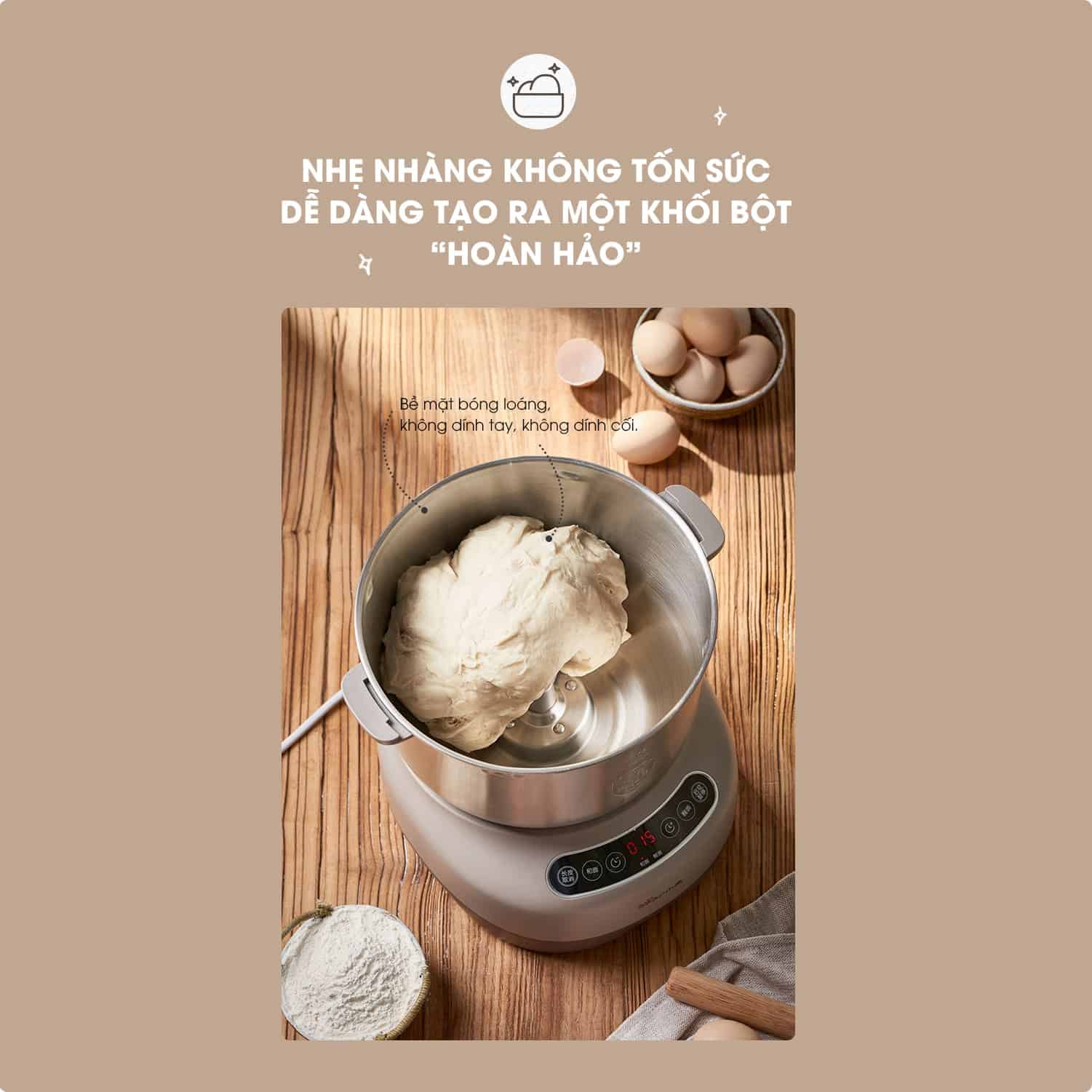 Máy nhồi trộn bột Bear 7L nhào bột, ủ bột tự động, âu trộn thép không gỉ – Hàng chính hãng bảo hành 18 tháng 6 Lý do nên mua MÁY NHỒI TRỘN BỘT BEAR