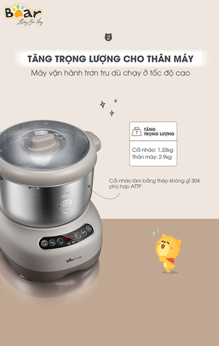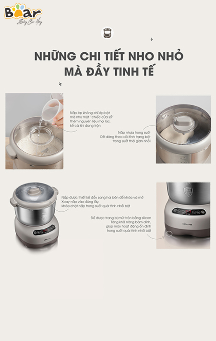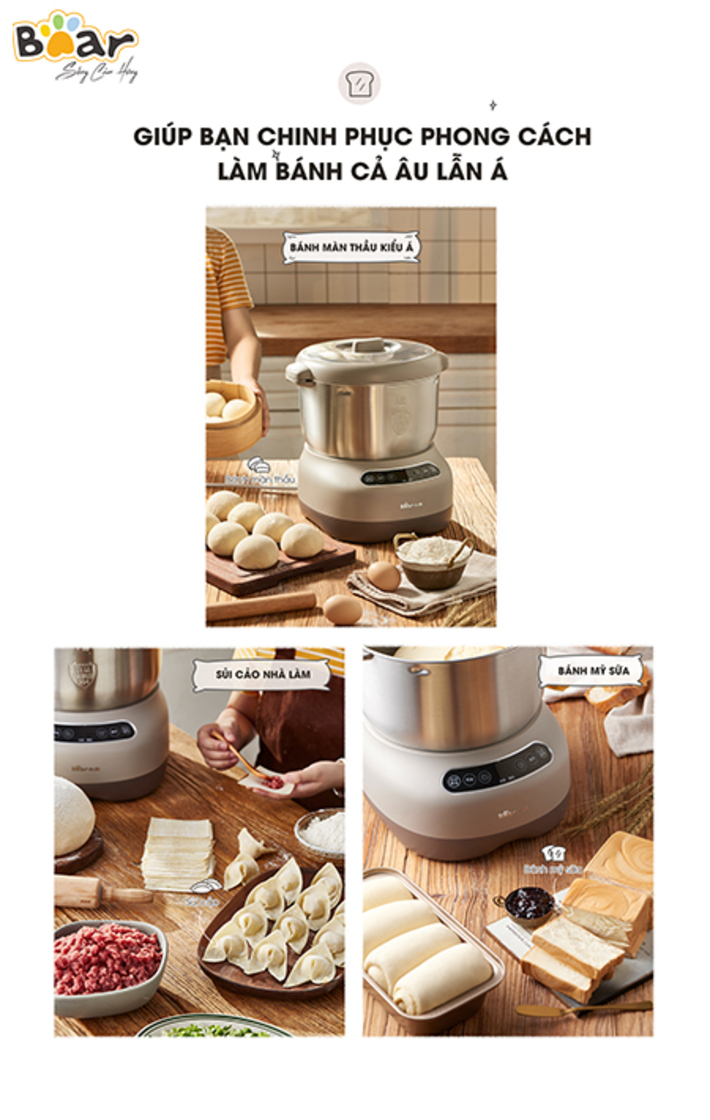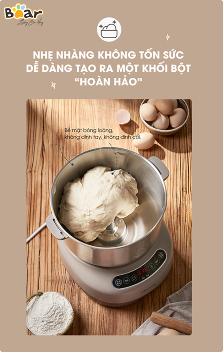 Máy nhồi trộn bột Bear 7L nhào bột, ủ bột tự động, âu trộn thép không gỉ – Hàng chính hãng bảo hành 18 tháng 6 Lý do nên mua MÁY NHỒI TRỘN BỘT BEAR