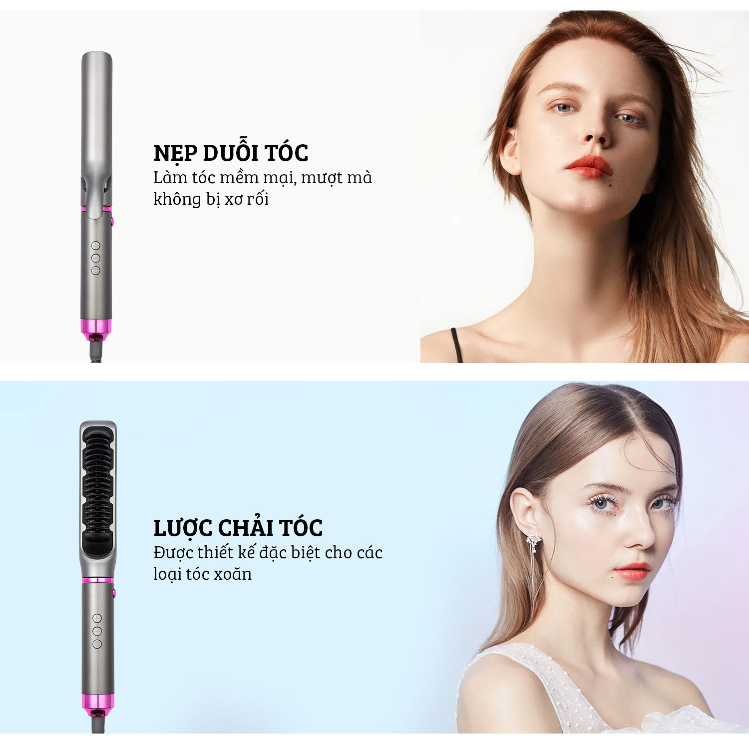 Giúp bạn thoải mái tạo kiểu từ ép thẳng cho đến làm xoăn bồng bềnh Để có những mái tóc tạo kiểu bồng bềnh, ngoài việc ra salon nhờ đến sự trợ giúp của những nhà làm
