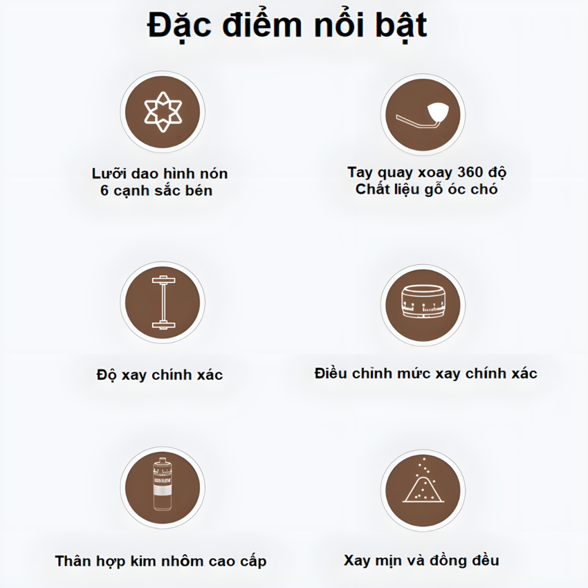 - Nhanh: Hầu hết những ai sở hữu chiếc cối xay này đều yêu thích tốc độ xay của nó. Cối có lưỡi xay bằng thép sắc bén, hoạt động vô cùng mượt mà. Cũng nhờ lưỡi xay chuẩn hình nón 6 cánh core kép xay độ mịn đồng đều lên đến 99.09% (Độ mịn lý tưởng của một chiếc cối xay thủ công như thế này).