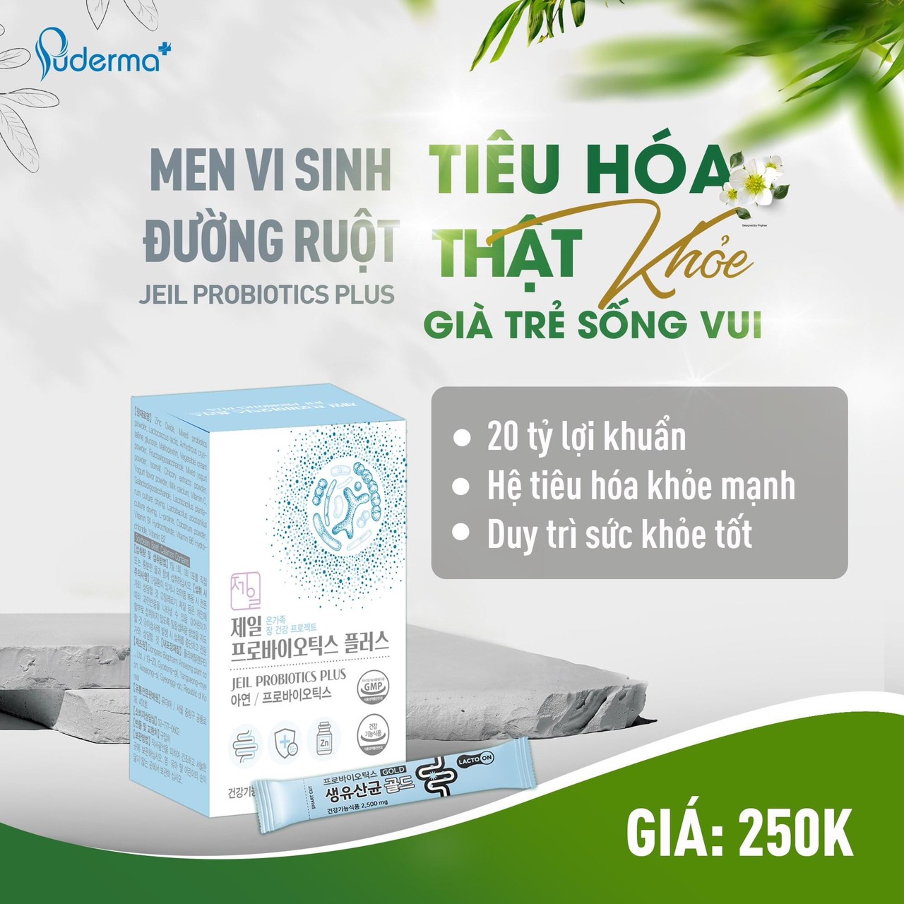 MEN VI SINH ĐƯỜNG RUỘT JEIL PROBIOTICS PLUS (Men tiêu hóa JEIL PROBIOTICS PLUS) Xuất xứ: Sản xuát 100% tại Hàn quốc Quy cách: Hộp nguyên 30 gói = 250k Gói lẻ: 10 gói =