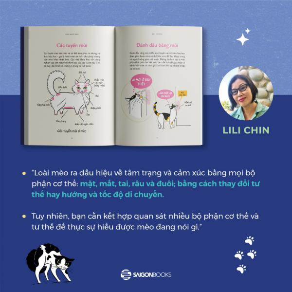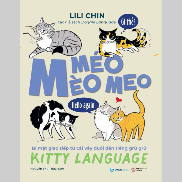 Quyển sách “Kitty Language: An Illustrated Guide to Understanding Your Cat” - quyển sách “đọc vị” loài mèo đình đám trong hội con sen toàn thế giới nay đã chính thức có phiên bản Việt hóa với tên: “Mèo méo meo - Bí mật giao tiếp từ cái vẫy đuôi đến tiếng grừ grừ”. Quyển sách nhận được 4.6 sao trên sàn Amazon và trở thành quyển cẩm nang đặc biệt giúp “sen” kết nối với “quàng thượng” theo một cách vừa khoa học, vừa gần gũi. Những hình minh họa đáng yêu từ tác giả Lili Chin sẽ giúp bạn thấu hiểu “ngôn ngữ” của boss yêu qua mọi bộ phận cơ thể: mặt, mắt, tai, râu và đuôi; và cả cách thay đổi tư thế hay hướng và tốc độ di chuyển.