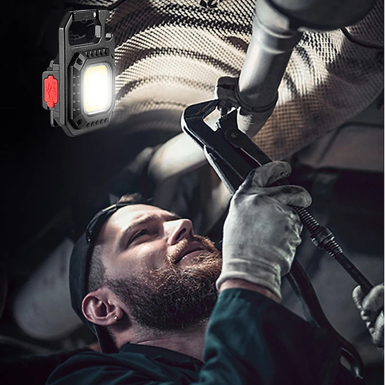 Đèn Pin LED COB Mini 800 Lumens Có Móc Khóa Di Động Đa Ứng Dụng Đèn COB siêu sáng: Đèn pin móc khóa có đèn LED mạnh mẽ có thể cung cấp tới 800 lumen chiếu sáng trong khi vẫn duy trì kích thước di động và thiết kế đơn giản. 3 chế độ ánh sáng: Đèn pin móc khóa của chúng tôi có 3 chế độ chiếu sáng-COB chế độ cao, chế độ thấp COB, chế độ nhấp nháy COB Thiết kế di động: Đế nam châm và tay cầm có thể xoay cho phép bạn rảnh tay khi làm việc. Thiết kế nam châm cho phép đèn được gắn vào bất kỳ kim loại nào và 180° Tay cầm có thể gập lại cho phép đặt đèn ở các góc khác nhau hoặc treo ở một số nơi nhất định. Có thể sạc lại USB: Khi cần sạc, chỉ cần kết nối nó với bất kỳ nguồn điện USB nào. Đèn pin sạc USB này được cung cấp bởi pin sạc tích hợp dung lượng lớn, bao gồm cả cáp sạc micro USB sang USB. Được sử dụng rộng rãi: đèn pin bỏ túi di động có móc khóa, giá đỡ gấp, dụng cụ mở chai và giá đỡ nam châm. Được sử dụng để câu cá, đi bộ đường dài và cắm trại, vặn nút chai, bảo trì bên đường khẩn cấp hoặc làm việc đa năng,