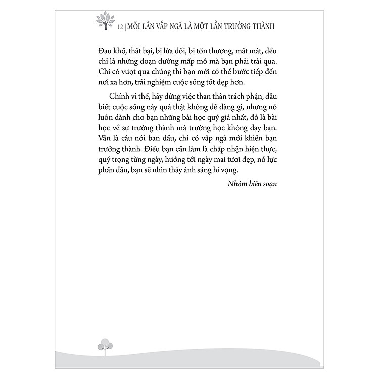 Mỗi Lần Vấp Ngã Là Một Lần Trưởng ThànhCuộc đời là quá trình không ngừng trưởng thành.Trong quá trình này, bạn sẽ khó tránh khỏi vấp ngã, sẽ trải qua nhiều lần đau thương, và sẽ có những lúc bạn cảm...