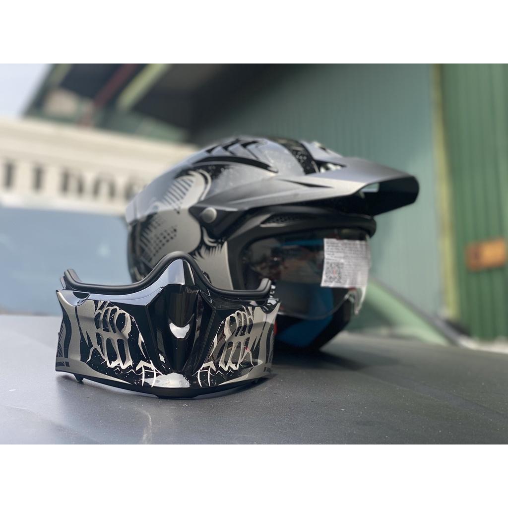 Sản phẩm hoàn chỉnh là mũ fullface, bao gồm mái che rời và mặt nạ có thể tháo/lắp nhanh chóng thành mũ 3/4.