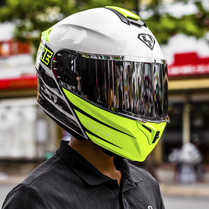 Sản phấm mới trong phân khúc mũ lật hàm của YOHE Helmets – Yohe 938 với kết cấu lật hàm 90 độ tiện dụng, cùng các cải tiến như thiết kế không dây viền mang vẻ thẩm mỹ cao, vệ sinh mũ qua thời gian sử dụng lâu dài dễ dàng hơn, vừa giảm trọng lượng cho mũ, Yohe 938 có trọng lượng nhẹ hơn so với các dòng mũ lật hàm cùng phân khúc.