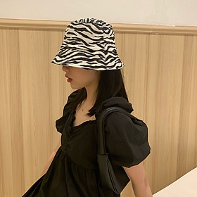 - Chất liệu: Thô - Màu sắc: Đen pha trắng - Họa tiết: bò sữa, vằn - Mũ thiết kế kiểu dáng thời trang, duyên dáng vừa có tác dụng che nắng vừa là phụ