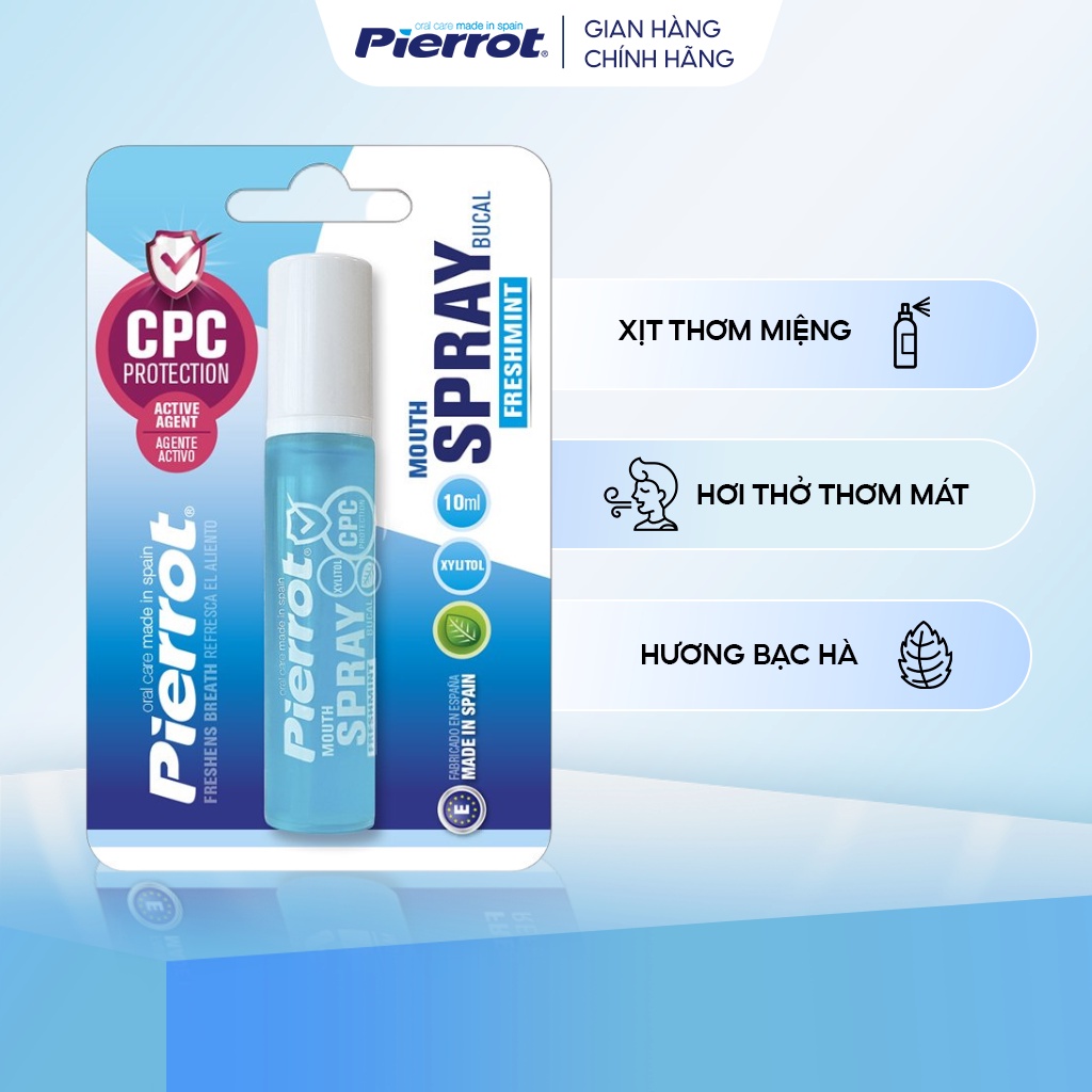 Sử dụng nước xịt thơm miệng ngày càng được nhiều người quan tâm vì những tiện ích không thể phủ nhận của loại sản phẩm này. Để tự tin hơn trong giao tiếp, nhiều người đã lạm dụng nước xịt thơm miệng để chống hôi miệng. Nước xịt thơm miệng, diệt khuẩn PIERROT MOUTH SPRAY với công thức khử trùng giúp diệt khuẩn, loại bỏ mùi hôi và mảng bám, cho hơi thở thơm mát suốt cả ngày. Ưu điểm của Nước xịt thơm miệng, diệt khuẩn PIERROT MOUTH SPRAY: