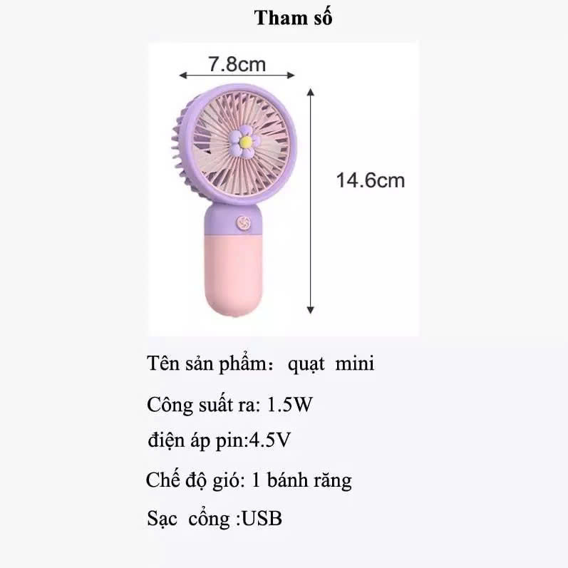 - Quạt họa tiết dễ thương. Phù hợp: khi đi dã ngoại, đi làm, đi học. Bộ sản phẩm bao gồm: 1 quạt cầm tay mini 1 dây cáp sạc