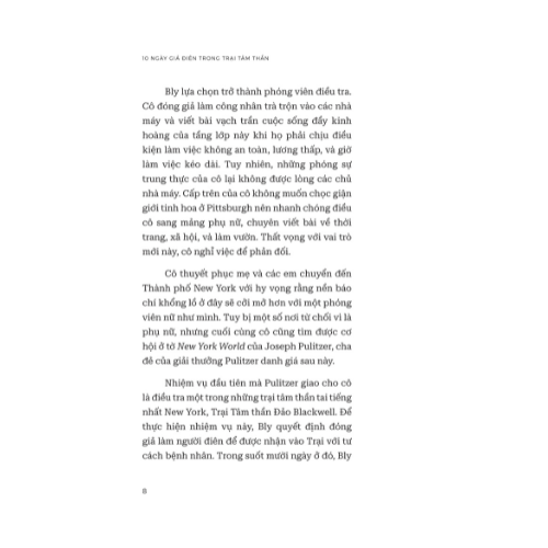 Nhiệm vụ đầu tiên mà Pulitzer giao cho cô là điều tra một trong những trại tâm thần tai tiếng nhất New York, Trại Tâm thần Đảo Blackwell. Để thực hiện nhiệm vụ này, Bly quyết định đóng giả làm người điên để được nhận vào Trại với tư cách bệnh nhân. Trong suốt mười ngày ở đó, Bly đã trực tiếp trải nghiệm cũng như tận mắt chứng kiến những sự ngược đãi cả về thể xác và tinh thần mà các bệnh nhân phải chịu.