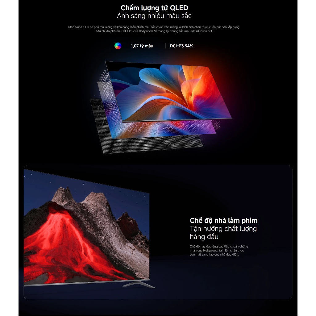 Tivi Xiaomi QLED 4K A Pro 43 inch 2026 thiết kế nguyên khối, chất liệu kim loại đẳng cấp cùng viền siêu mỏng trải nghiệm tràn viền ấn tượng. Kích thước màn hình 43 inch, chất lượng 4K sắc nét cùng tấm nền QLED với hơn 1 tỷ màu, DCI-P3 94% hiển thị tuyệt hảo. Công nghệ MEMC cùng tần số 60Hz cho các chuyển động siêu mượt, không giật hình, xé hình. Tích hợp 2 loa 10W cùng công nghệ DTS Virtual:X, mẫu tivi Xiaomi 43 inch này đem đến chất âm chân thực, giải trí sống động. Đặc điểm nổi bật: