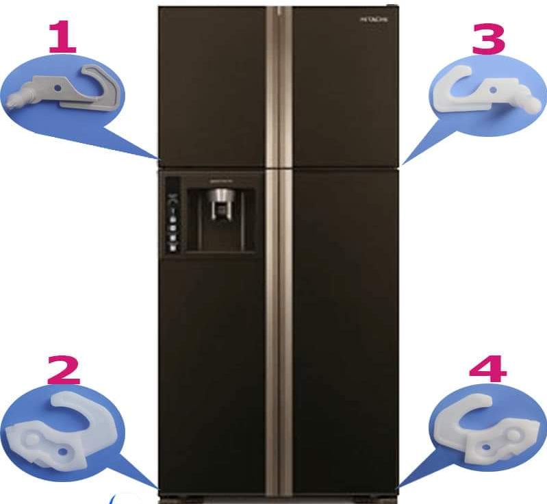 Ngàm cửa hay còn gọi lẫy cửa sử dụng chung nhiều model tủ lạnh Hitachi gồm 4 loại tương ứng 4 cánh cửa tủ lạnh: