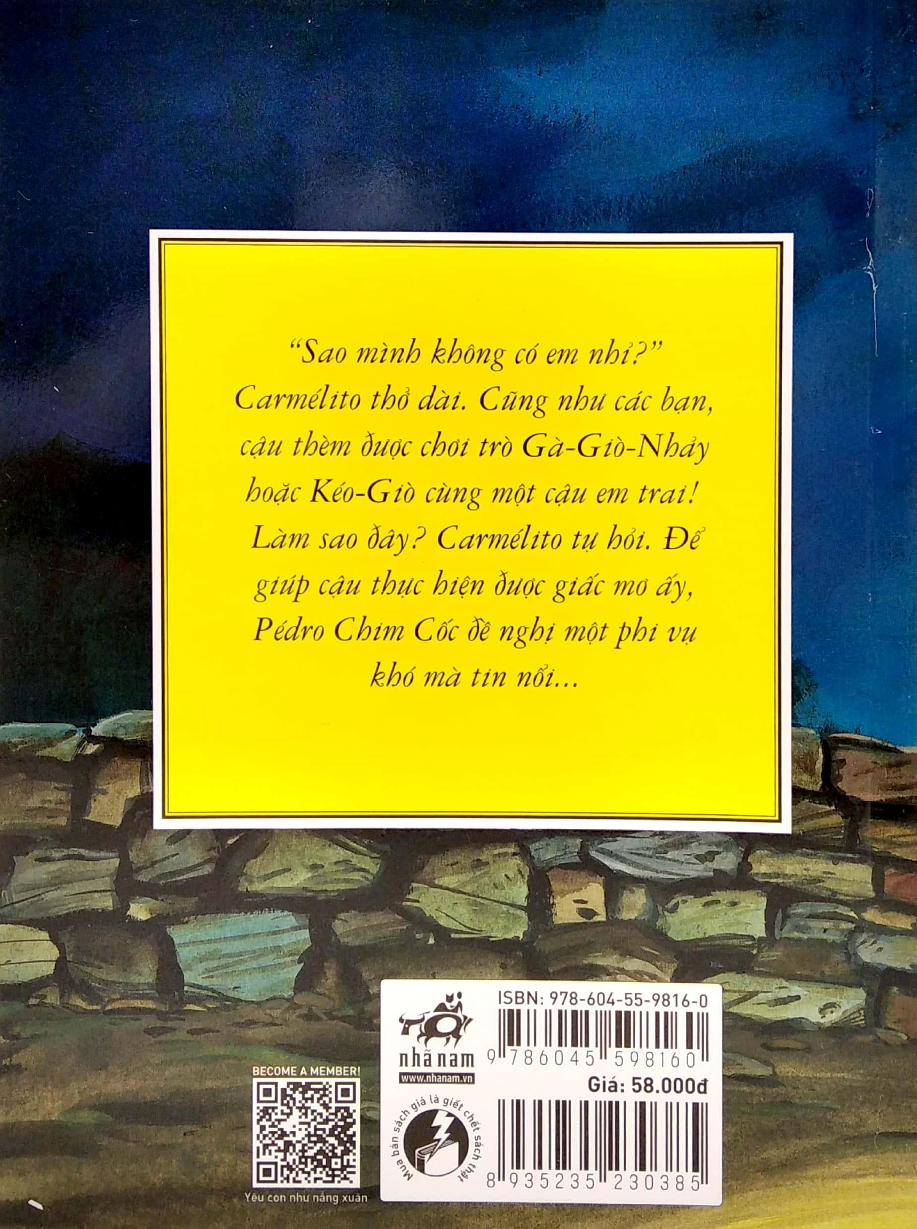 Thế là đến thời kỳ chào đời của lũ gà con. Các cô cậu gà giò tổ chức lễ hội chào đón em bé mới sinh. Chỉ mình Carmélito, cậu gà giò hồng là hơi buồn chút xíu. Cậu thèm thuồng nhìn bạn bè. “Sao mình không có em nhỉ…Nếu mình có em, bọn mình sẽ cùng nhau chơi Ga-Giò-Nhảy hoặc Kéo-Giòi…"
