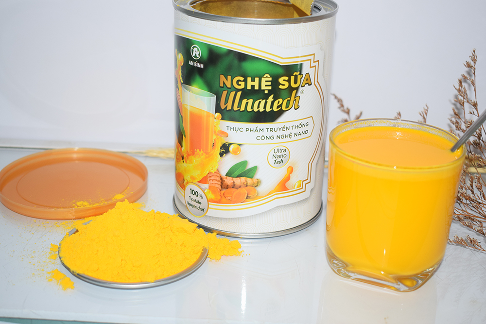 - Chống lão hóa. CÁCH DÙNG: Pha với nước ấm khoảng 40 - 50oC . Mỗi lần 2 muỗng cafe nghệ sữa. Uống mỗi ngày buổi sáng hoặc buổi tối. ĐIỀU QUAN TRỌNG CỦA NGHỆ SỮA. Như bạn đã biết nghệ khó tan trong nước, muốn nghệ sữa có thể hòa tan chúng ta có 2 cách : Cách thứ nhất: Trộn thêm bột trợ tan hóa học, cách làm này có giá thành rẻ, dễ sản xuất, nhưng sẽ làm cho bột sữa nghệ không mịn và chúng ta phải uống thêm chất trợ tan (không tốt cơ thể). Cách thứ 2: sử dụng công nghệ nano ulnatech tạo ra áp suất biến thiên tần số cao để làm vỡ hạt nghệ về kích thước dưới 150 nano làm giảm sức căng bề mặt, tăng khả năng hòa tan. Cách làm này cần phải có công nghệ cao và giá thành cũng cao hơn. Nhưng ưu điểm là không sử dụng chất trợ tan hóa học tránh được các tác dụng phụ không mong muốn. 4 YẾU TỐ TẠO NÊN NGHỆ SỮA ULNATECH CHẤT LƯỢNG VƯỢT TRỘI: