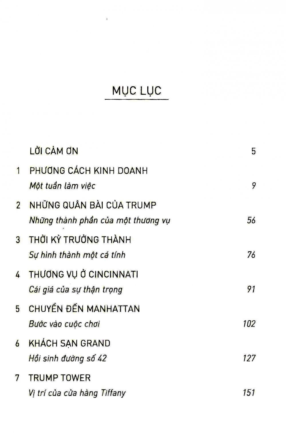Quyển sách cho chúng ta thấy cách Trump làm việc mỗi ngày - cách ông điều hành công việc kinh doanh và cuộc sống - cũng như cách ông trò chuyện với bạn bè và gia đình, làm ăn với đối thủ, mua thành công những sòng bạc hàng đầu ở thành phố Atlantic, thay đổi bộ mặt của những cao ốc ở thành phố New York… và xây dựng những tòa nhà chọc trời trên thế giới.