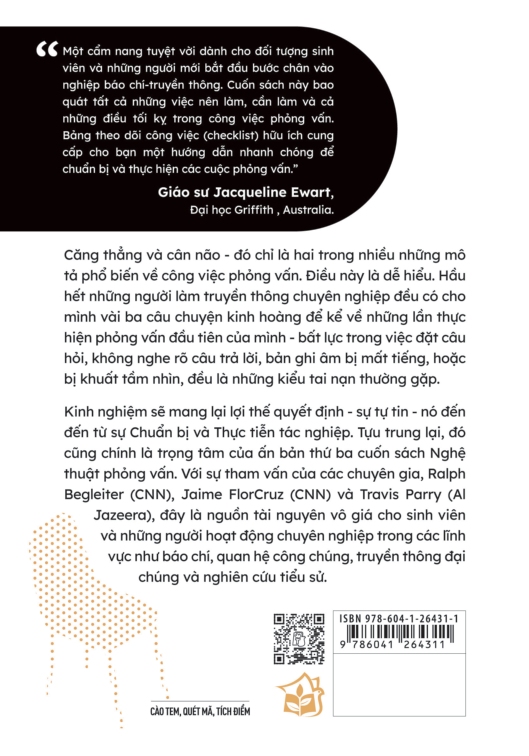 Đây thực sự là một bộ công cụ đầy đủ cho học viên và nhà báo chuyên nghiệp trau dồi các kỹ năng cần thiết để trở nên sắc sảo trong các cuộc phỏng vấn; một nguồn tài liệu lý tưởng và quan trọng cho những người đang học tập, nghiên cứu hoặc đang hoạt động trong lĩnh vực báo chí và PR, viết, sản xuất nội dung chuyên nghiệp,…