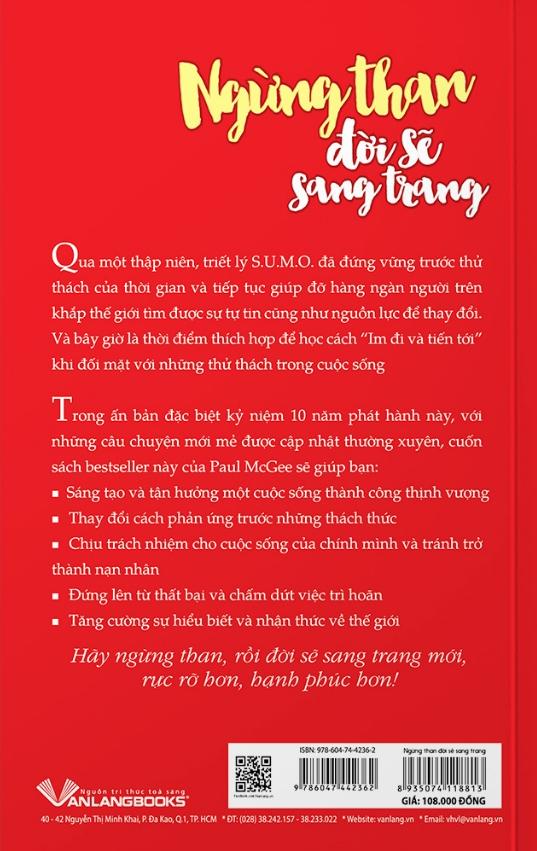 Qua một thập niên, triết lý S.U.M.O. đã đứng vững trước thử thách của thời gian và tiếp tục giúp đỡ hàng ngàn người trên khắp thế giới tìm được sự tự tin cũng như nguồn lực để thay đổi. Và bây giờ là thời điểm thích hợp để học cách “Im đi và tiến tới” khi đối mặt với những thử thách trong cuộc sống