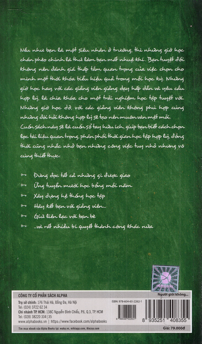 Cuốn sách Người giỏi không bởi học nhiều do Alpha Books biên soạn sẽ cung cấp cho bạn những phương pháp dễ áp dụng nhất trong học tập cũng như rèn luyện phong cách sống, giúp bạn đạt được những điều trên, và còn hơn thế nữa.