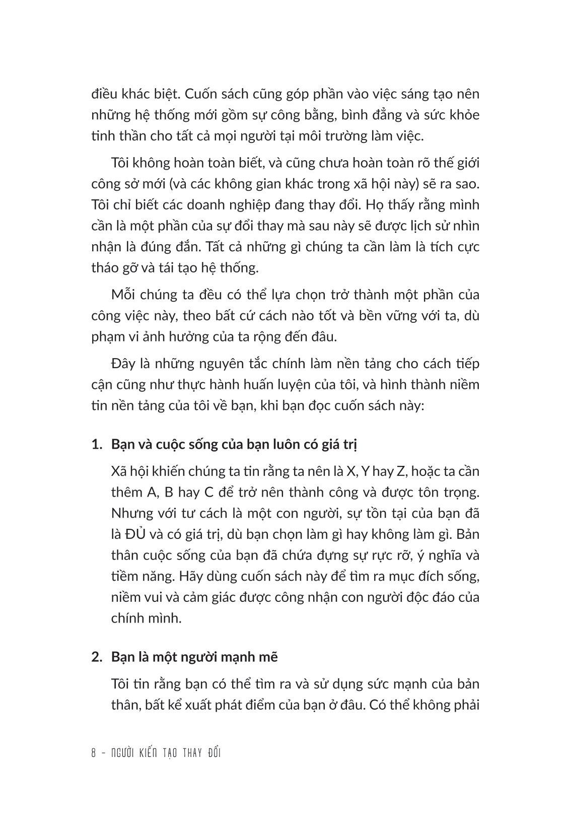 Nếu bạn đã từng ít nhất một lần dấy lên trong đầu những câu hỏi “Tôi là ai?” “Vì sao tôi phải làm công việc này?” và khao khát tạo ra sự khác biệt trong sự nghiệp của mình thì Người kiến tạo thay đổi là cuốn sách dành cho bạn.