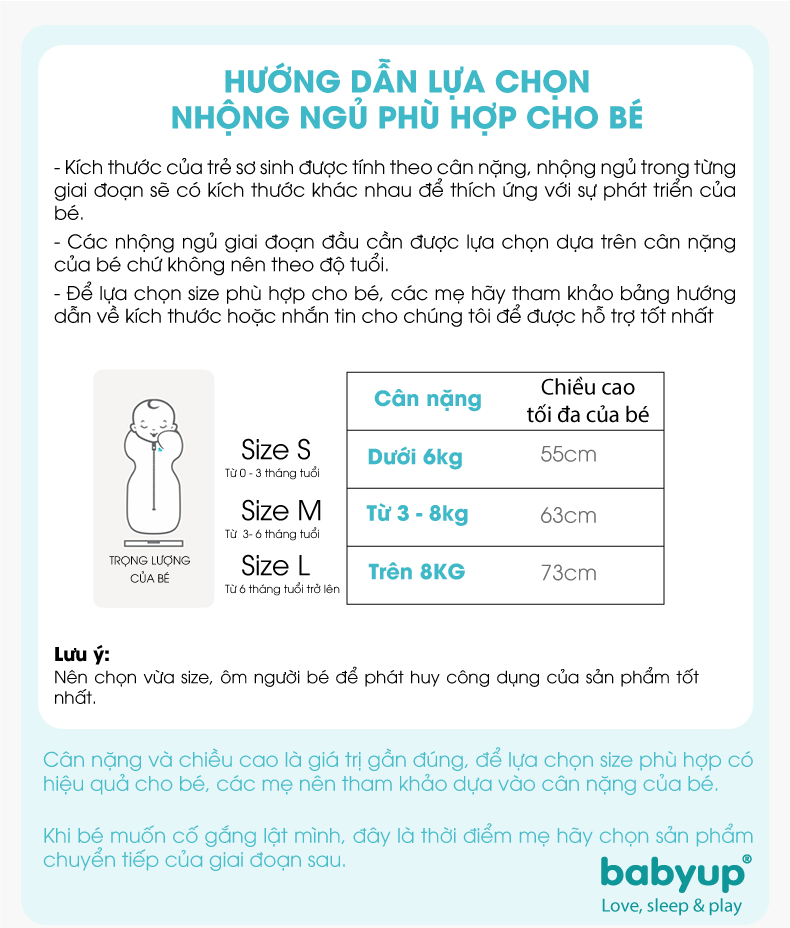 - Nhộng chũn Babyup được làm từ chất liệu vải nhập 100% Hàn Quốc CO GIÃN 4 chiều tuyệt đối, siêu mềm mại. Nâng cao CHẤT LƯỢNG GIẤC NGỦ của Bé. Hướng dẫn chọn Size