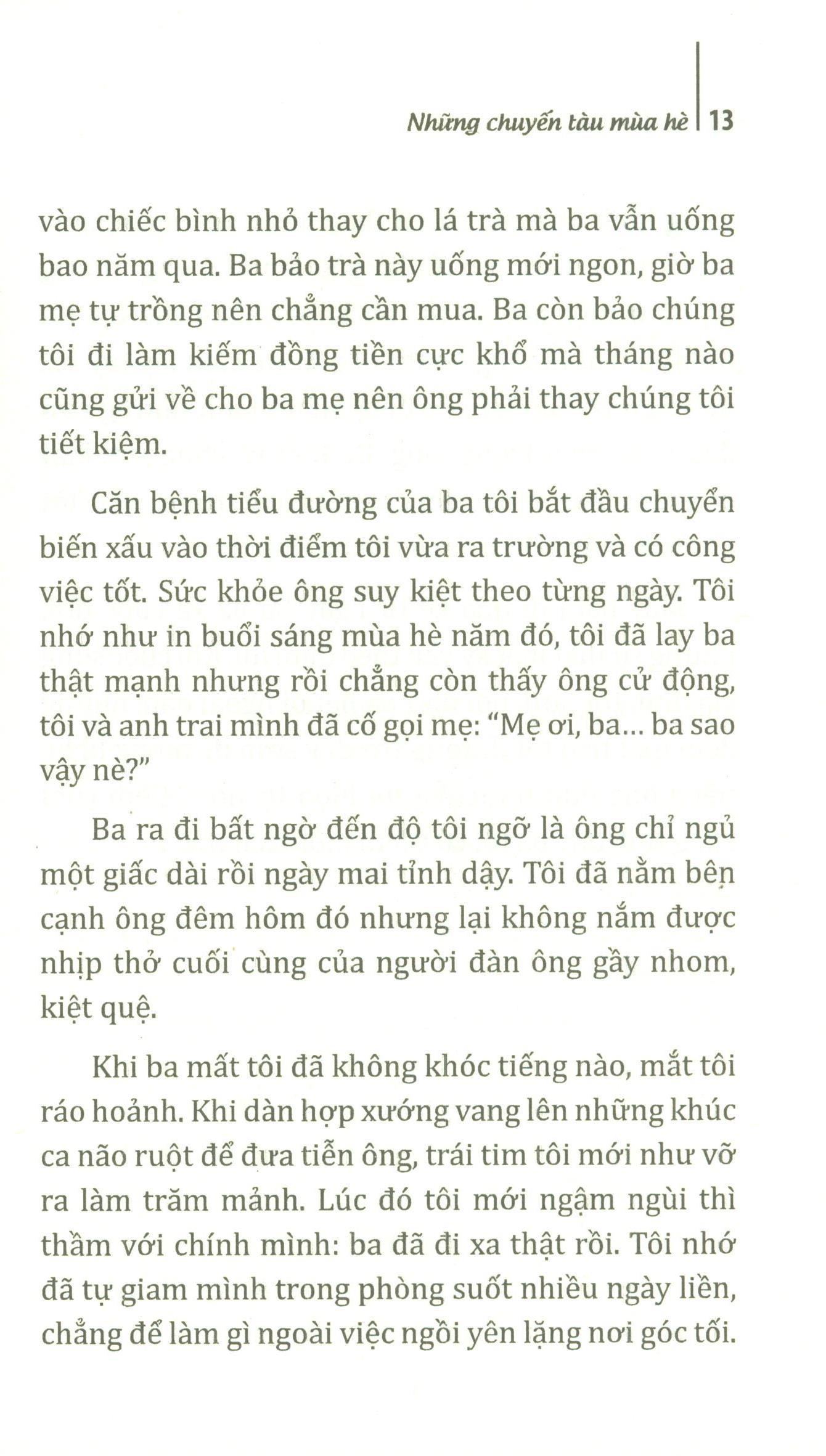 Một số trích đoạn: (1) – Nhịp tim của con chị đấy, chị nghe thấy chưa ạ? Lời nữ hộ sinh cắt ngang dòng suy nghĩ của Hằng. Hằng khẽ gật đầu. Ừ, thiên thần bé