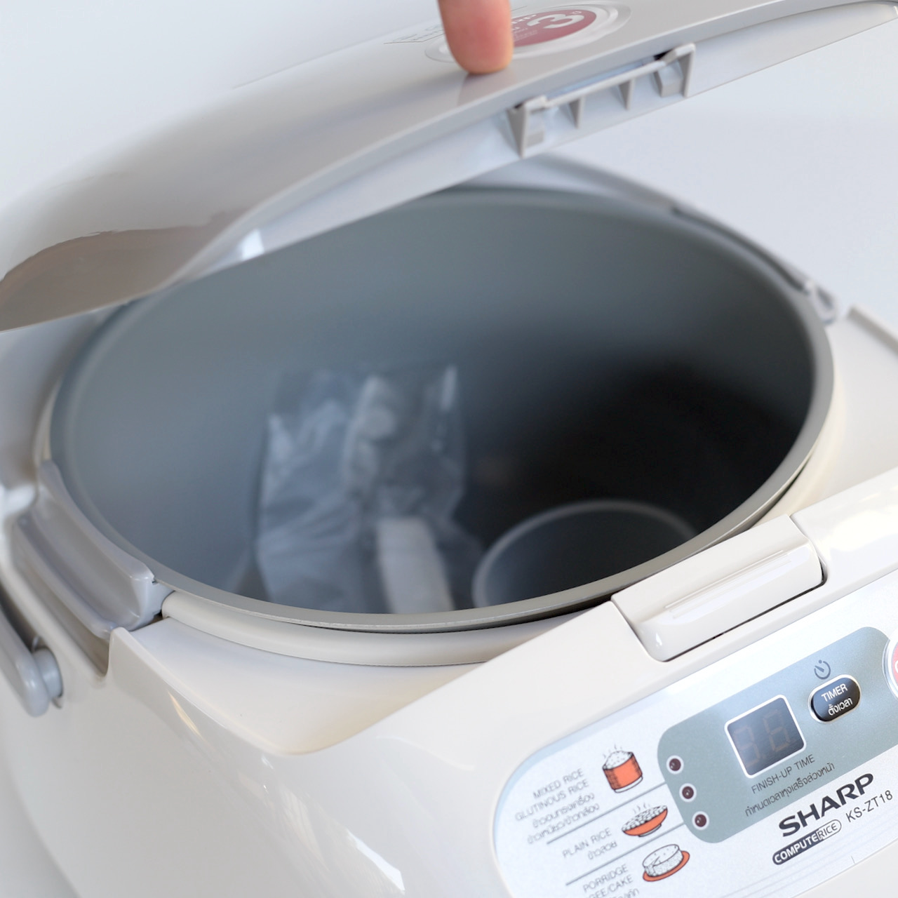 Nồi Cơm Điện Tử Sharp KS-ZT18 là một trong những sản phẩm cao cấp của Sharp, nay đã có mặt tại Việt Nam. Nồi có công suất 830W và dung tích 1.8L, có thể giữ ấm 12 tiếng, có chức năng hẹn giờ và đầy đủ các chức năng nấu như nấu cơm thường, nấu cháo, làm bá Sản phẩm sẽ làm cho không gian bếp của bạn trở nên sang trọng hơn.