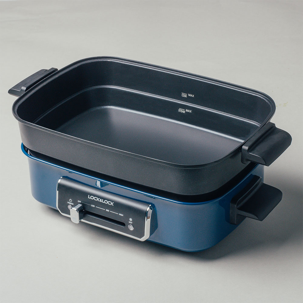 Nồi điện đa năng Lock&Lock 2.5L EJG556, Hàng chính hãng, 3trong1 nướng, hấp, nấu, Làm nóng nhanh, Dễ chỉnh nhiệt-JoyMall THÔNG TIN SẢN PHẨM Chất liệu: Cold tie plate, Tấm nhôm, Nhôm, PET Màu: xanh