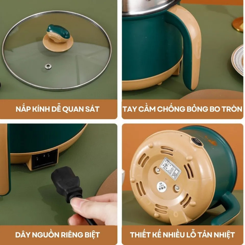 Nồi Lẩu Điện Mini 2 Tầng Chống Dính Tặng Khay Hấp, Giúp Chiên, Xào, Rán, Lẩu, Nấu Cơm,... Ca Nấu Mì
