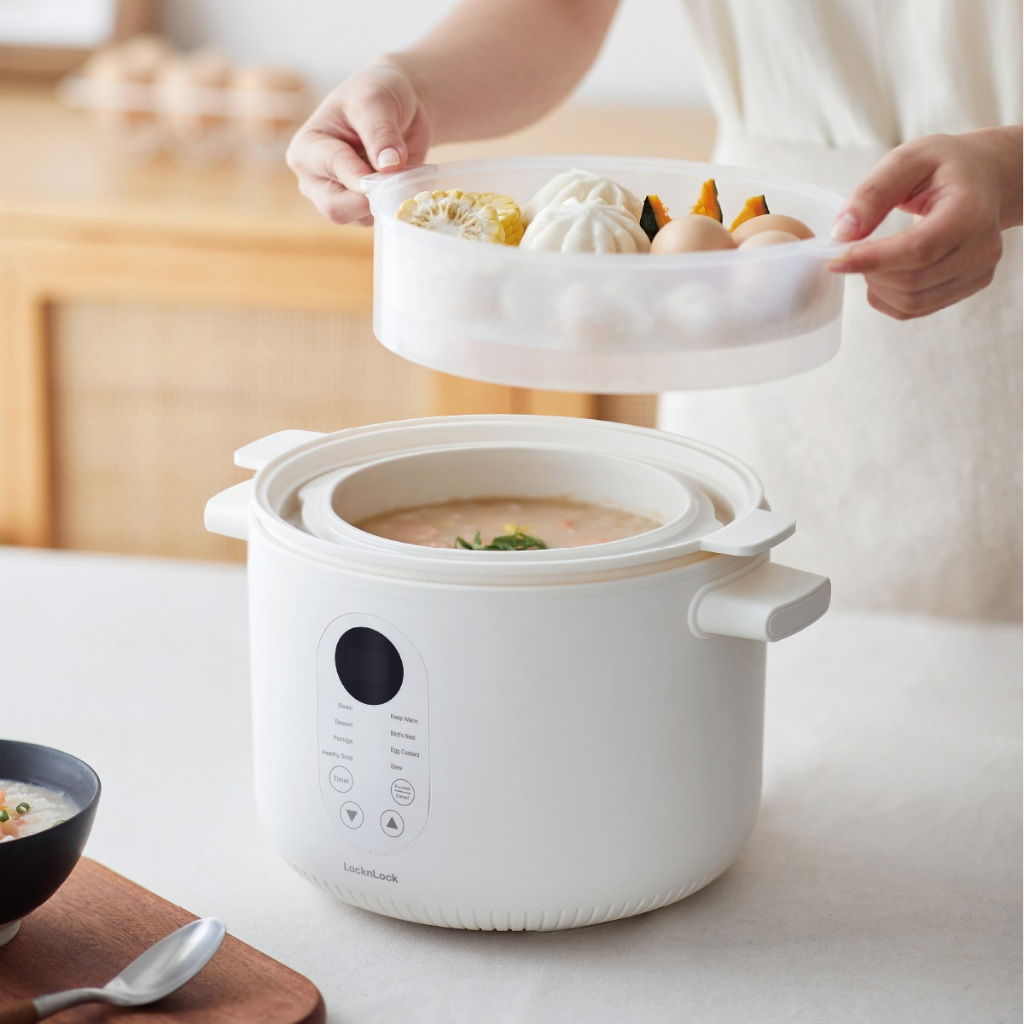 Nồi nấu chậm đa năng 2.5L Locknlock Bianco EJP164IVY, Hàng chính hãng, 4 thố sứ đi kèm, 7 chức năng, giữ ấm - JoyMall