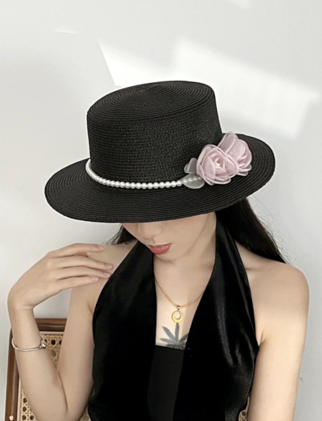 Mũ cói rơm vành phẳng nữ mùa hè phiên bản Hàn Quốc chống nắng UV cho kỳ nghỉ Nón đi biển Paris thời trang hàng đầu Pháp Chất liệu cói