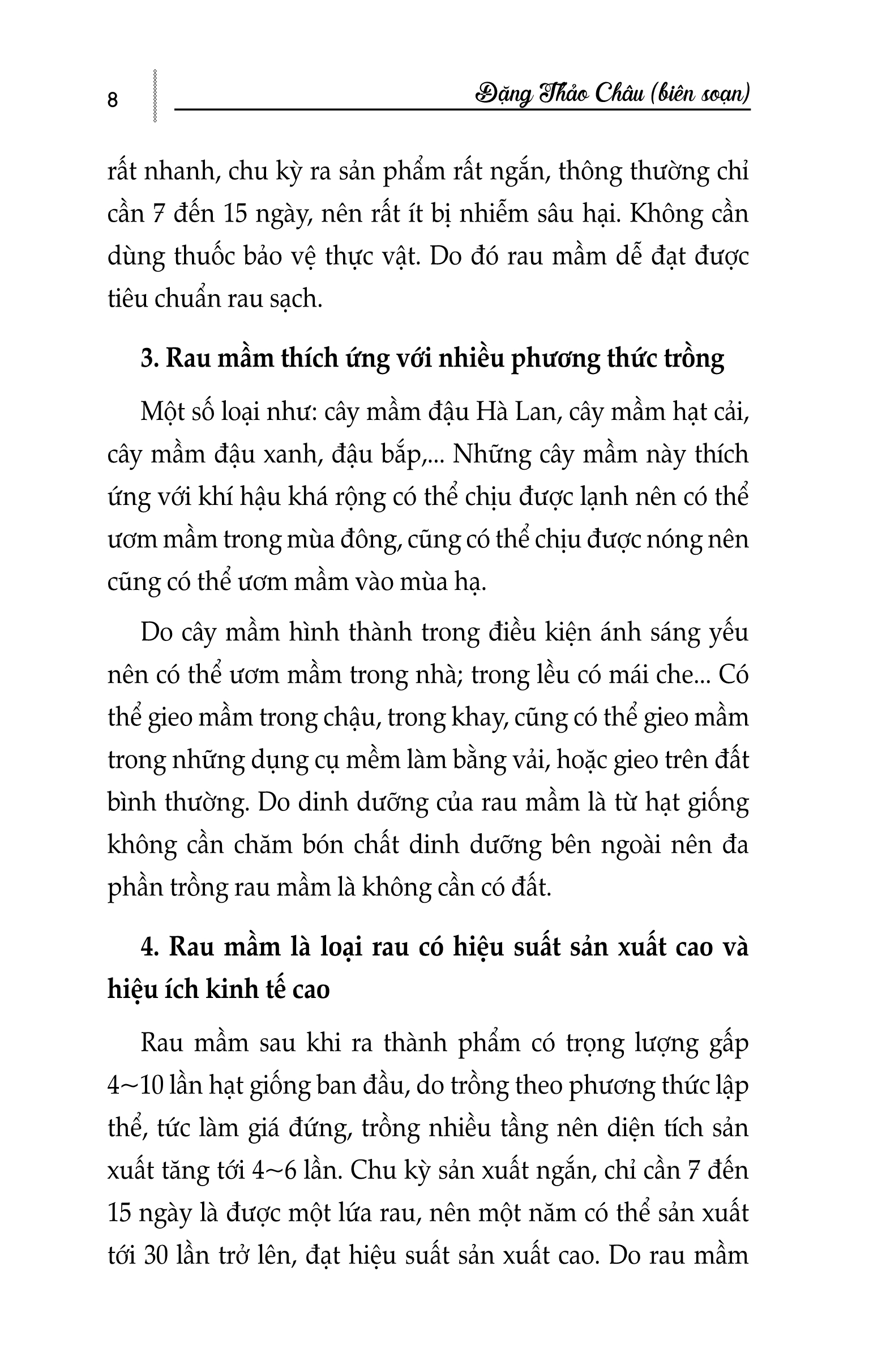 Đặc điểm, lợi ích của rau mầm. Dụng cụ và vật liệu trồng rau mầm. Kĩ thuật gieo trồng và chăm sóc, thu hoạch sử dụng rau mầm.