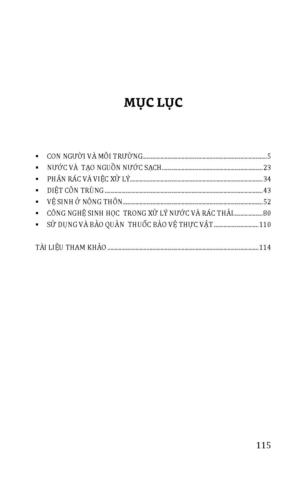 Đề cập vấn đề quan trọng và cấp thiết của nhân loại trong quá trình sống và phát triển - Bảo vệ môi trường - thông qua việc phân tích các yếu tố về con người và môi trường, nước và tạo nguồn nước sạch, phân rác và việc xử lý, diệt côn trùng, vệ sinh ở nông thôn, công nghệ sinh học trong xử lý nước và rác thải, sử dụng và bảo quản thuốc bảo vệ thực vật, góp phần xây dựng cuộc sống sạch và xanh