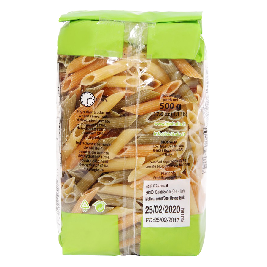 Nui ống dài rau củ quả hữu cơ Bioitalia (500g) thương hiệu Bioitalia với thành phần 100% Organic nhập khẩu từ Ý an toàn khi chế biến món ăn cho gia đình bạn. Mì có màu xanh từ rau bina cùng màu đỏ từ cà chua tạo nên sắc màu hoàn toàn từ tự nhiên. Vì sức khỏe gia đình bạn, hãy sử dụng các sản phẩm có chứng nhận hữu cơ vì sức khỏe gia đình bạn.