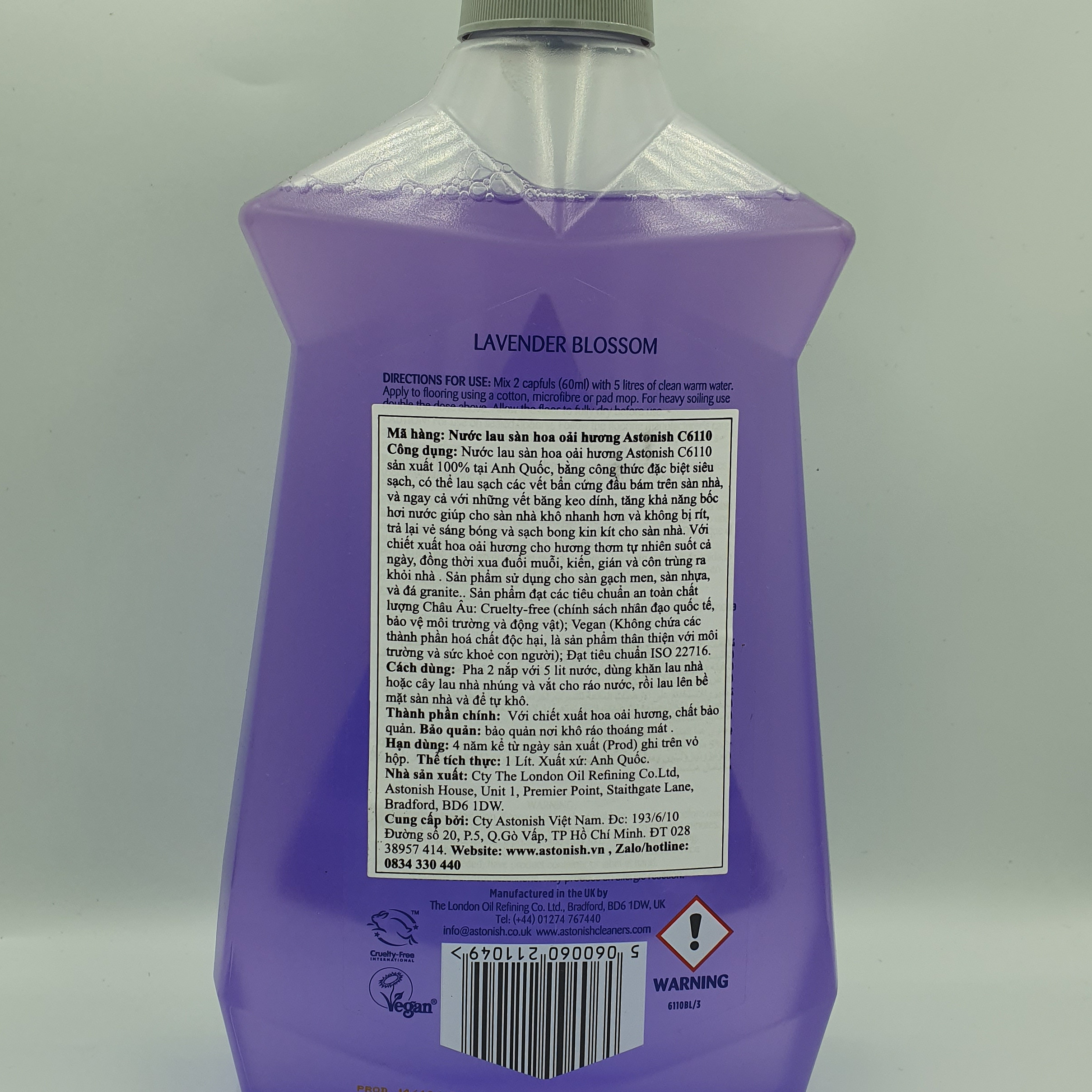 Nước lau sàn hoa oải hương Astonish C6110 sản xuất 100% tại Anh Quốc, bằng công thức đặc biệt siêu sạch, có thể lau sạch các vết bẩn cứng đầu bám trên sàn nhà và