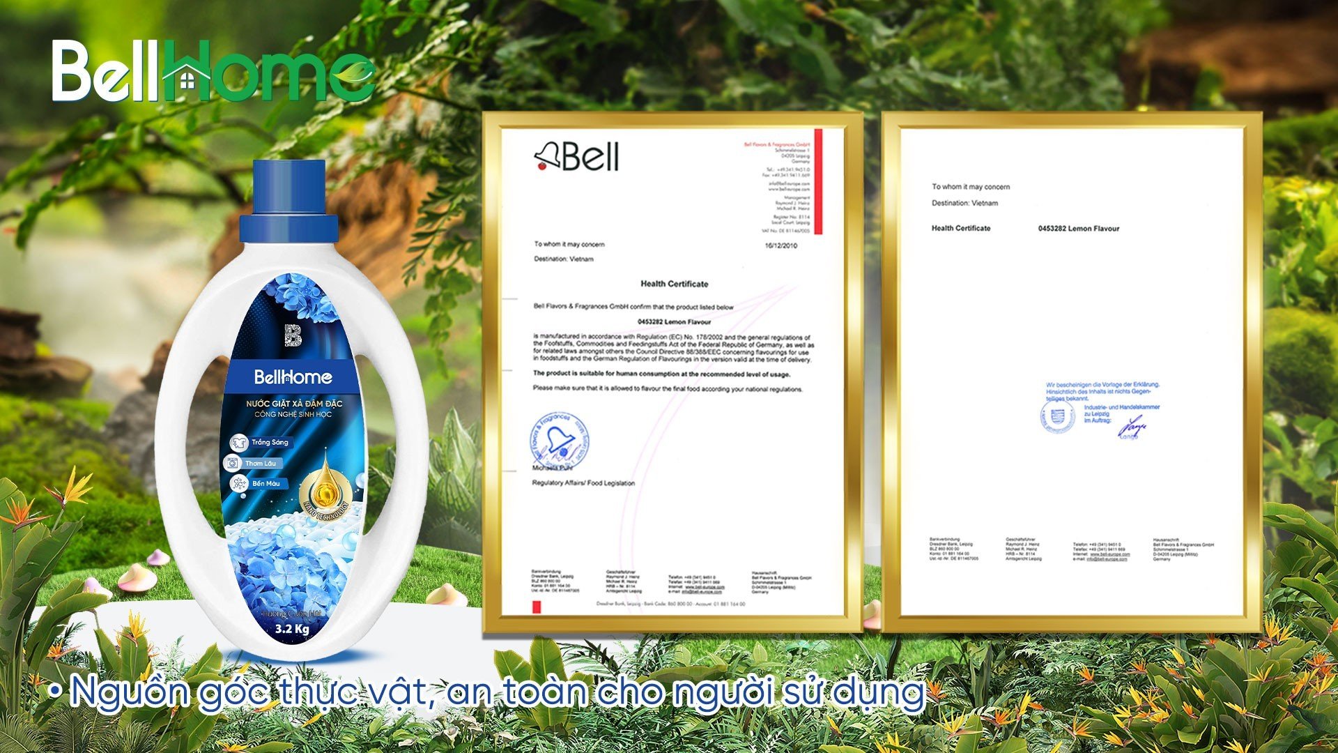 Nước Giặt Xả Công Nghệ Sinh Học Bell Home – Giải Pháp Sống Xanh Hiện Đại, An Toàn Cho Sức Khỏe Nước giặt xả Bell Home đang thu hút sự chú ý từ cộng đồng người tiêu dùng nhờ ứng dụng công nghệ enzyme sinh học tiên tiến, mang đến khả năng làm sạch tối ưu và hương thơm lưu giữ lâu dài. Đây là giải pháp lý tưởng cho những ai theo đuổi phong cách "Sống Xanh", bảo vệ sức khỏe gia đình và thân thiện với môi trường. Tìm Hiểu Về Nước Giặt Xả Công Nghệ Sinh Học Bell Home Nước giặt xả Bell Home là dung dịch giặt xả được sản xuất bằng công nghệ sinh học, sử dụng các enzyme có nguồn gốc tự nhiên để loại bỏ vết bẩn cứng đầu trên quần áo. Không giống như các loại nước giặt công nghiệp sử dụng hóa chất mạnh như NaOH hay Clo, sản phẩm này an toàn cho sức khỏe, không gây kích ứng da, đặc biệt phù hợp với gia đình có trẻ nhỏ. Sản phẩm được tạo nên từ 97% thành phần thực vật và không chứa phosphate hay các hương liệu nhân tạo, mang đến sự yên tâm cho người tiêu dùng về độ an toàn và tính thân thiện với môi trường. Công Nghệ Enzyme Hiện Đại Trong Nước Giặt Xả Bell Home Bell Home đã ứng dụng hai loại enzyme sinh học tiên tiến trong sản phẩm: